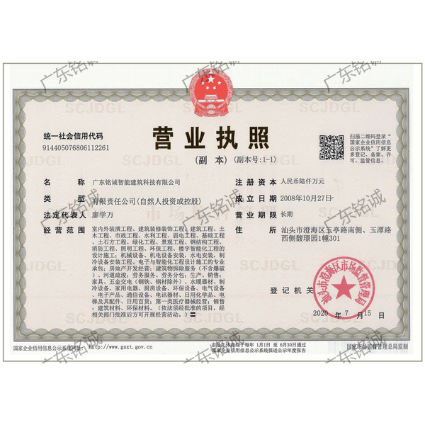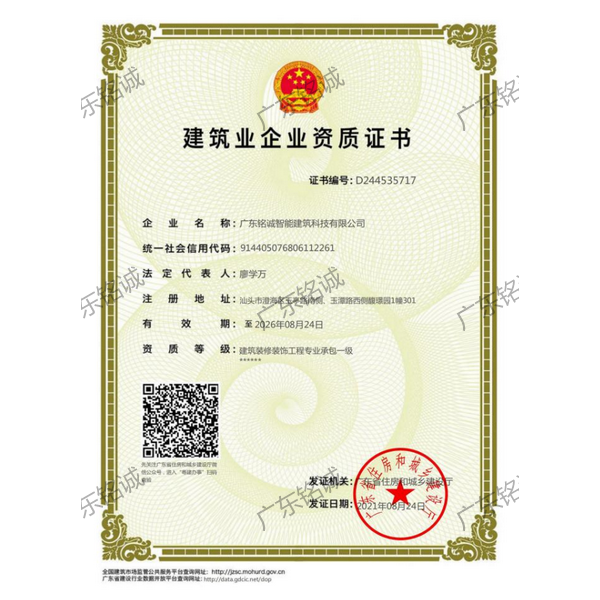 廣東銘誠智能建筑科技有限公司成立于2008年,公司注冊資金為6000萬元,集辦公裝修、酒店裝修、家庭裝修、軟裝裝飾、娛樂場所裝修為一體的裝飾公司,率先提出“創(chuàng)造現(xiàn)代人文空間,挑戰(zhàn)業(yè)界高峰”的雄壯口號,并以此為目標,完成了一大批具有影響力的大型公裝工程:其中包括廣州國際中醫(yī)藥展貿(mào)中心、奧飛澄海音樂廳、澄海區(qū)國家稅務局、澄海興信小額貸款、澄海潮商村鎮(zhèn)銀行、汕頭龍湖賓館、澄海豪庭大酒店、御園國際飲食城、澄海福晉軒酒家、享樂匯保健有限公司、假日商務酒店、尚景康園物業(yè)、星輝車模股份有限公司、奧飛動漫有限公司、香港國際玩具、汕頭萬基貿(mào)易有限公司、泰興源實業(yè)有限公司、汕頭皇冠玩具有限公司等;家裝工程包括南澳黃金海岸整幢的精裝房、中信華府、富春華庭、金信鳳凰名城、凱旋花園、中信金城、柏嘉半島、陽光海岸、金葉島等高等住宅。 ? 廣東銘誠智能建筑科技有限公司經(jīng)過十余年的建筑裝飾裝修施工領域項目積淀,于2018年2月取得“建筑裝修裝飾工程專業(yè)承包二級”、“建筑機電安裝工程專業(yè)承包三級”、“建筑工程施工總承包三級”、“施工勞務不分等級”、“安全生產(chǎn)許可證”等專業(yè)資質,并于2021年8月建筑裝修資質正式升級為“建筑裝修裝飾工程專業(yè)承包一級”。這是對企業(yè)規(guī)模、工程業(yè)績、管理水平、誠信表現(xiàn)的肯定,是企業(yè)實力與能力的展現(xiàn)。 ? 公司每一項工程都始終堅持“精美設計、精心施工、確保合同承諾;勤奮開拓、追求突出、創(chuàng)造時代精品”的質量方針,力爭做一項工程,樹一座豐碑。 ? ?銘誠擁有一支由專業(yè)的營銷精英和客戶顧問組成的營銷隊伍,勤奮、敬業(yè)的每一位銘誠員工將本著“贏在別人休息時”的專業(yè)精神,為客戶提供全程營銷及售后服務,確??蛻舻暮戏ɡ妫峁w貼周到的服務,做到讓顧客滿意。 ? 銘誠擁有一批資老牌室內(nèi)環(huán)境設計師,以“現(xiàn)代人文空間”為設計理念,為客戶提供人性化、差異化、智能化的室內(nèi)環(huán)境設計服務,準確的將人性化特點與室內(nèi)環(huán)境相融合,達到了“現(xiàn)代人文空間”的和諧統(tǒng)一。 ? ? ? ?自主創(chuàng)新、視社會責任為己任的精神使我們在發(fā)展的道路上屢獲殊榮:不斷提升的銘誠品牌知名度和美譽度,靠的是優(yōu)質的產(chǎn)品,靠的是不斷提升的營業(yè)績,靠的是國內(nèi)的核心技術和誠信的服務。相信通過銘誠人的努力,銘誠將會不斷以新的姿態(tài)為提升廣大消費者的生活質量做好服務,為中國裝飾行業(yè)設計創(chuàng)新做出突出貢獻。 ? ? “忘掉競爭、共